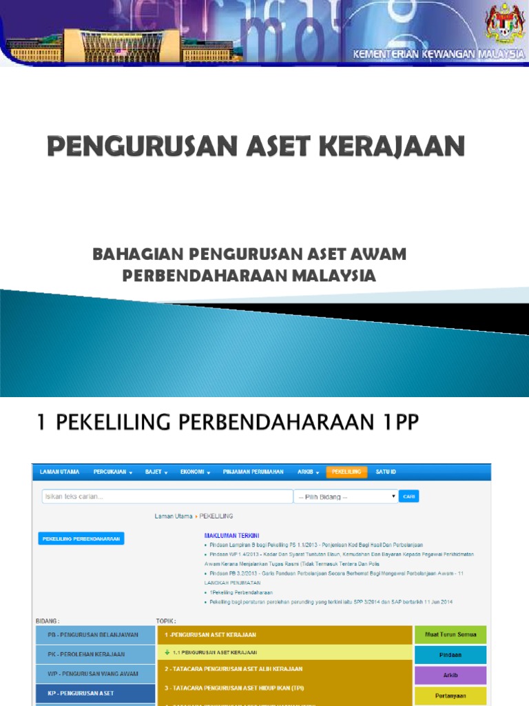 1pekeliling perbendaharaan 1pp merupakan peraturan kewangan dan perakaunan dalam pengurusan kewangan kerajaan yang dikeluarkan oleh perbendaharaan di bawah seksyen 4 akta tatacara kewangan 1957 akta 61. 1pekeliling perbendaharaan soalan lazim pb. 2 2 tatacara pengurusan aset alih kerajaan am 2 1 pendahuluan 1. Apakah arahan arahan perbendaharaan berkaitan perolehan kerajaan.