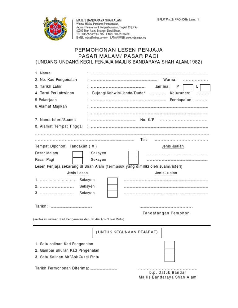 Akta kerajaan tempatan 1976 undang undang kecil pusat kecantikan dan penjagaan kesihatan majlis bandaraya shah alam 2007. Panduan penamatan perniagaan nama borang nama borang permohonan kelulusan nama perniagaan. Majlis bandaraya shah alam tingkat 1 wisma mbsa persiaran perbandaran 40000 shah alam selangor darul ehsan tel. Borang permohonan pembaharuan lesen borang ini hendaklah diisi dengan terang dan jelas.