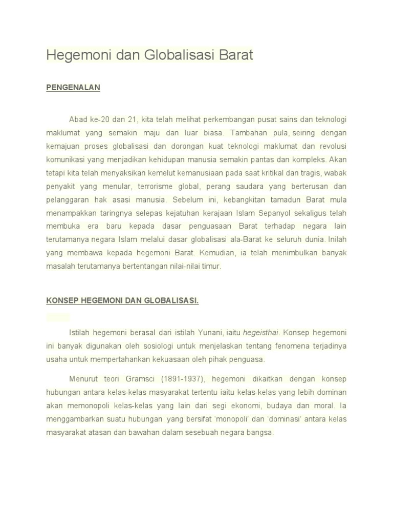 Malahan trend globalisasi dalam era dominasi islam pula dapat dikesan akar umbinya ke zaman pra islam. Mohd nazahah lim. Konsep globalisasi dan cabaran yang dihadapi dalam. Menurut fauzi et al 2009 dominasi barat.