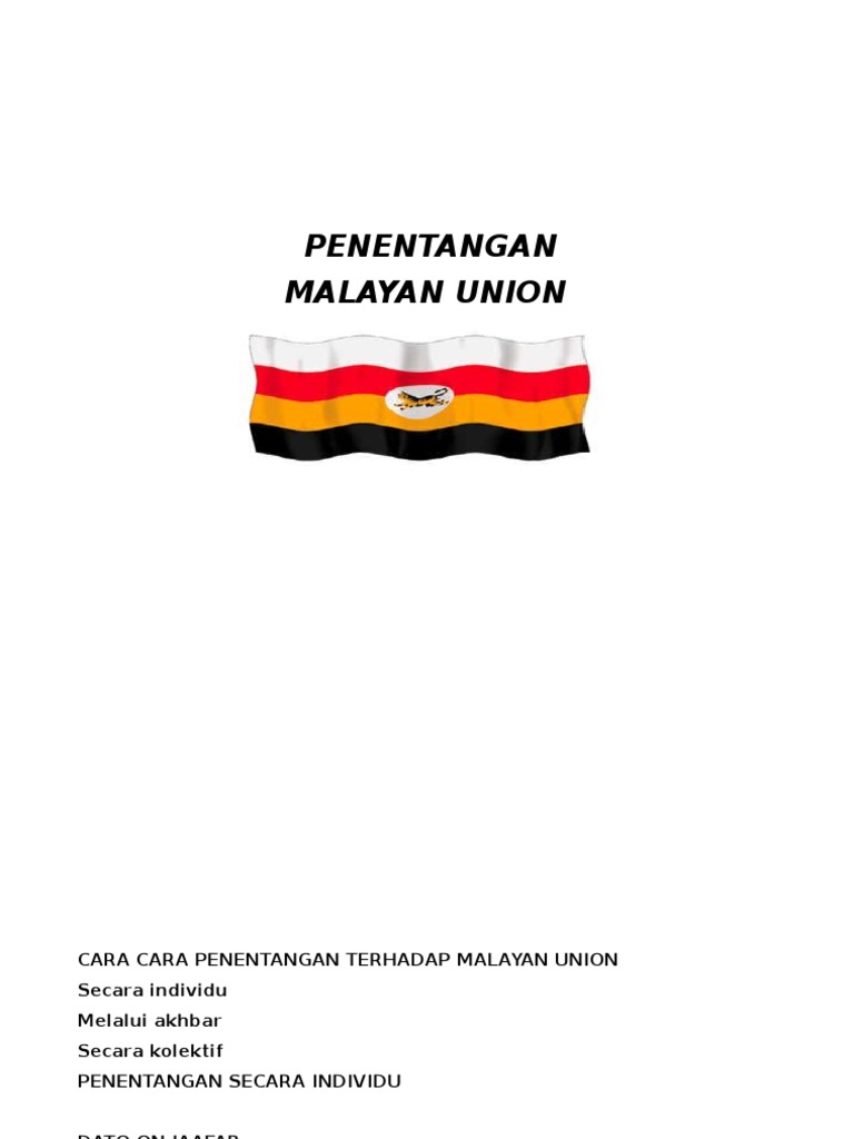 Academia edu is a platform for academics to share research papers. Cara cara orang melayu menentang malayan union. Raja raja melayu sejak dari awal sudah menyatakan penentangan keras mereka terhadap malayan union terutama selepas pembentangan kertas putih malayan union yang dibuat pada akhir tahun 1945. Sebab sebab penentangan malayan union.