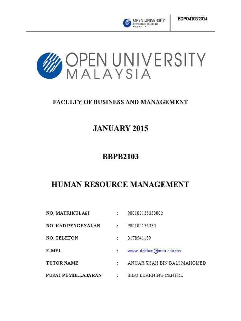 Contoh Assignment Pengurusan Sumber Manusia Oum