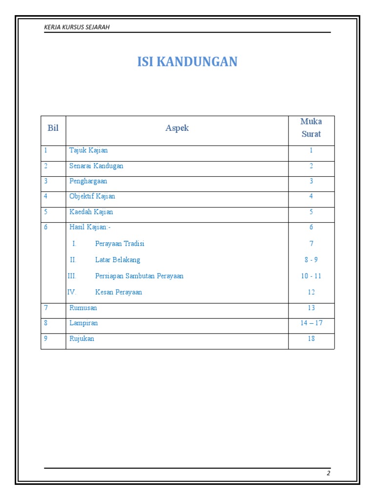 Isi kandungan muka surat 1 0 pengenalan 2 0 xxxxx 3 0 xxxx 4 0 xxxx 5 0 xxxx 6 0 rumusan bibliografi lampiran kalau ada p s.