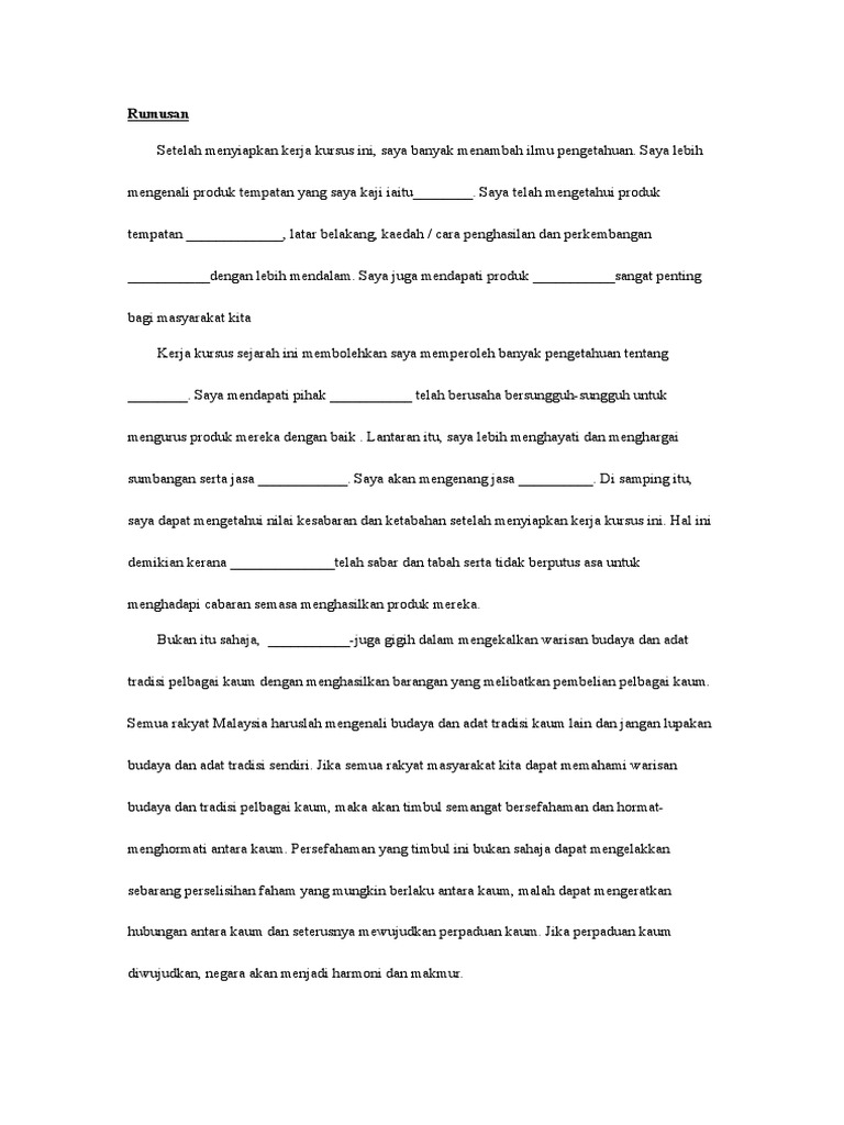 Contoh Kesimpulan Kerja Kursus Sejarah
