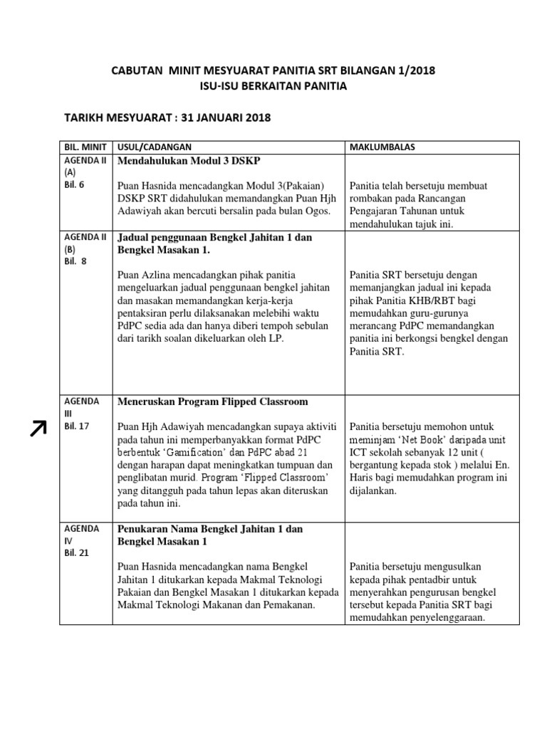Contoh minit mesyuarat 2020. Anjung kuala lumpur 2. Agenda mesyuarat dan contoh lengkap catatan minit mesyuarat panitia sejarah sherly jewinly 950922 12 6662 3 pismp rbt ipg kampus pendidikan teknik 2. Ianya penting kerana minit mesyuarat merupakan sumber rujukan masa hadapan dimana pada kelazimannya format minit disusun mengikut agenda mesyuarat dan perlu kelihatan kemas dan teratur.