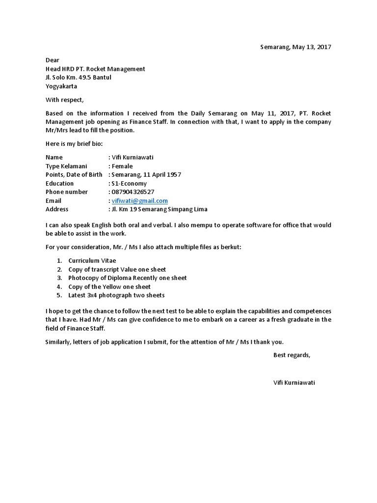 2 contoh surat lamaran kerja bahasa inggris untuk fresh graduate bagi anda yang baru saja lulus dari bangku perkuliahan dan sedang mencari kerja mungkin contoh surat lamaran kerja berikut ini akan sangat membantu untuk anda. 2 contoh surat lamaran kerja bahasa inggris untuk fresh graduate bagi anda yang baru saja lulus dari bangku perkuliahan dan sedang mencari kerja mungkin contoh surat lamaran kerja berikut ini akan sangat membantu untuk anda. Contoh surat lamaran kerja dalam bahasa inggris staff produksi. Berhubung artikel ini ditujukan untuk para fresh graduate maka hipwee sukses beri contoh cv fresh graduate tanpa pengalaman bahasa inggris.