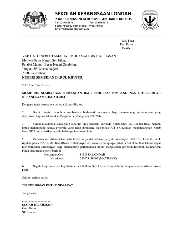 Contoh surat mohon sumbangan kewangan. Format gambar contoh surat mohon sumbangan barang yang benar 2019. Contoh surat memohon sumbangan lcd projektor. Gambar contoh surat mohon sumbangan syarikat yang baik dan benar 2019. The collection that consisting of chosen picture and the best among others.