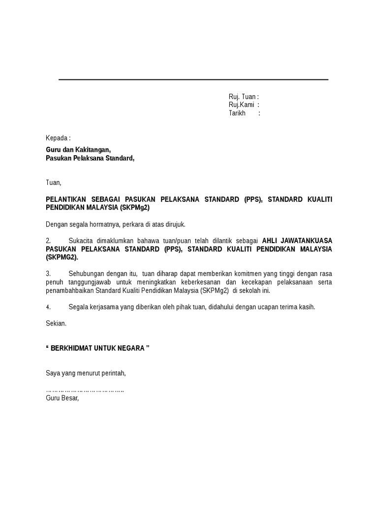 Berikut kami kongsikan beberapa contoh surat surat pelantikan jawantakuasa yang ada di sekolah. The collection that consisting of chosen picture and the best amongst others. Surat surat pelantikan ini tidak mempunyai format khusus tetapi ianya perlu jelas tujuan dan maklumat yang hendak disampaikan. Isi kandungan juga perlu menyatakan tarikh khusus ianya bermula dan tamat dikuatkuasakan.