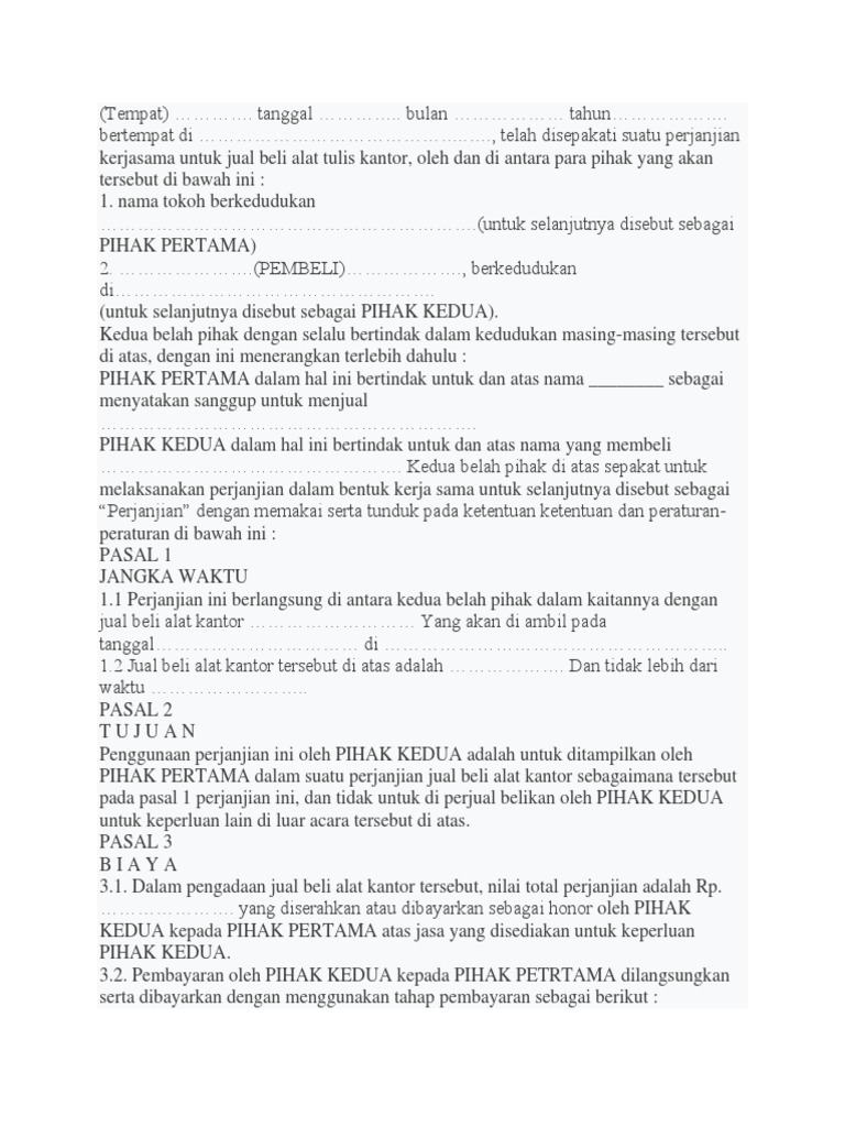 Contoh Surat Perjanjian Jual Beli Barang Alat Tulis Kantor
