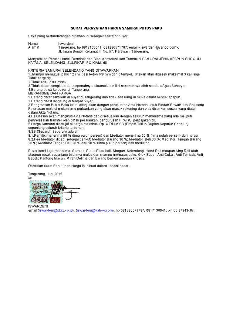 Hal ini sangat berguna untuk menghindari perselisihan di kemudian hari. Untuk itu anda bisa menulis surat perjanjian jual beli rumah seperti contoh di bawah ini. Jual samurai roll putus paku asal bayer langsung jual beli mas batanga.