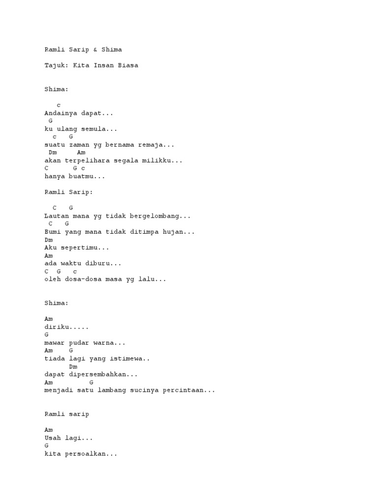 Diriku hanya insan biasa miliki naluri yang sama tak ingin berpaling tak ingin berganti jiwa ku sering saja berkata ohh andai ku mampu ulang semula ku pasti tiada yang curiga kasih kan hadir.