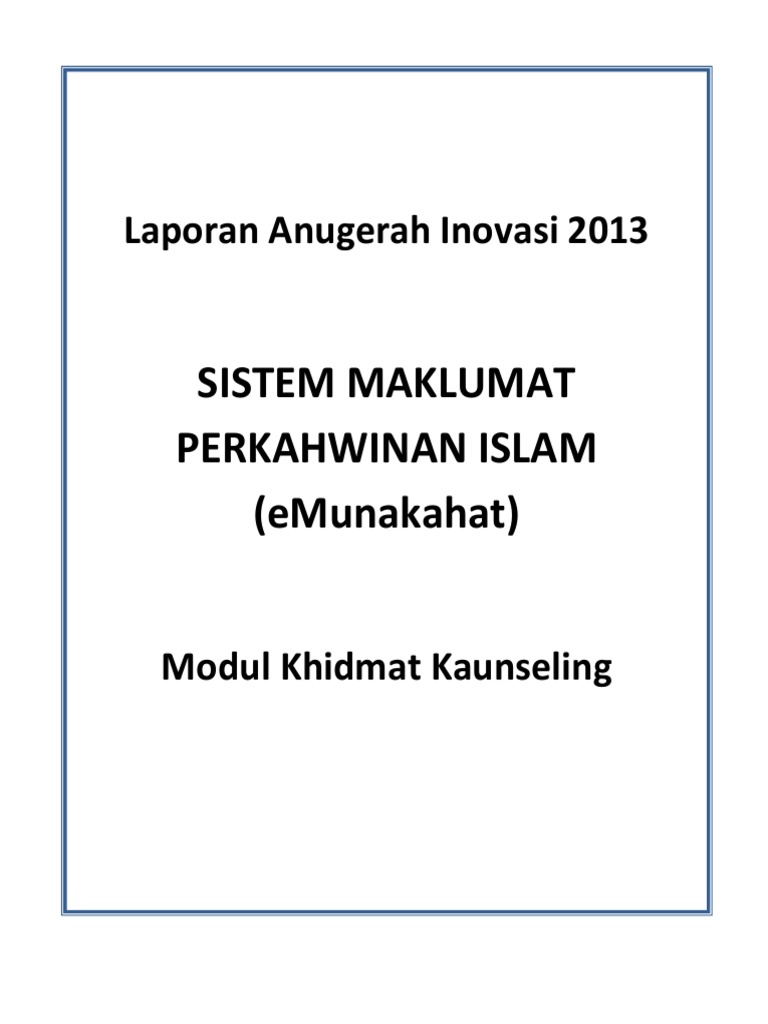 E munakahat pulau pinang. 2 5 elemen keberkesanan melalui penggunaan modul khidmat nasihat ini segala rekod. Pengenalan e m unakahat. Perkahwinan adalah satu sunnah yang amat digalakkan dalam islam di antara tanda tanda kebesaran nya ia menjadikan untuk kamu pasangan dari jenis kamu sendiri untuk kamu tinggal tenteram disampingnya dan dijadikan di antara kamu kasih sayang dan belas kasihan. Borang permohonan capaian sistem e munakahat.