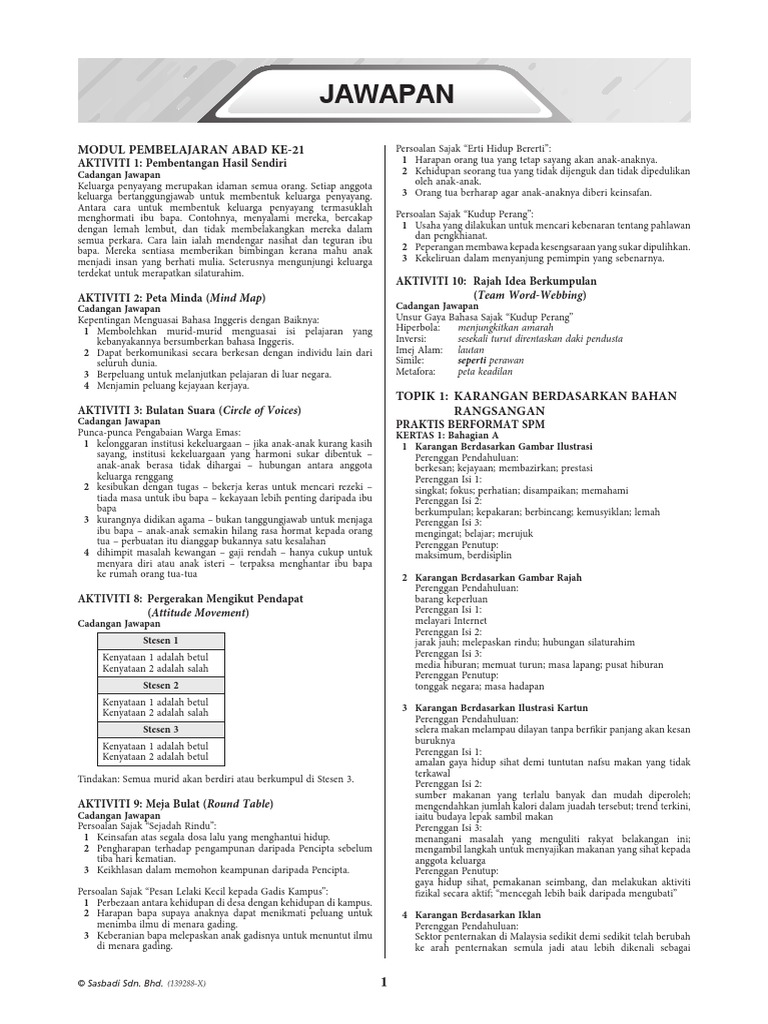 Jawapan Modul Ikon 2020 Bahasa Melayu Tingkatan 1