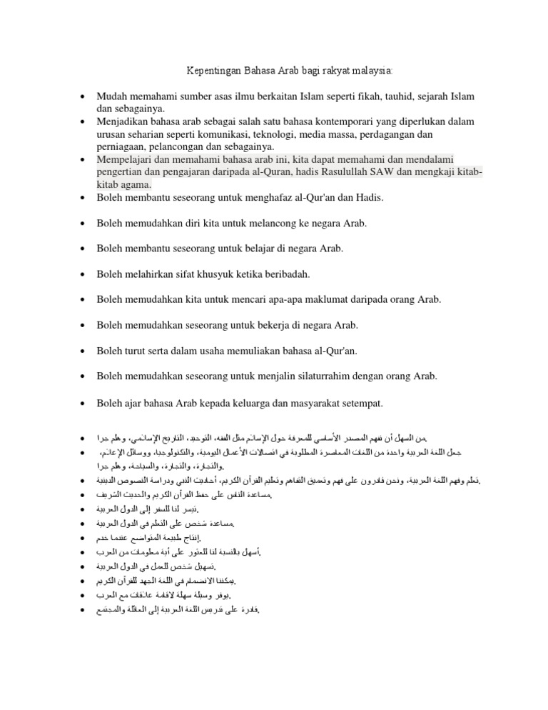 Kepentingan belajar bahasa arab. Ianya telah menempatkan di posisi tertinggi dalam sejarah peradaban islam selama berabad abad. Manfaat belajar bahasa jepang. Mata pelajaran bahasa arab merupakan antara subjek wajib di kebanyakan sekolah sekolah berteraskan agama. 13 keistimewaan belajar bahasa arab.