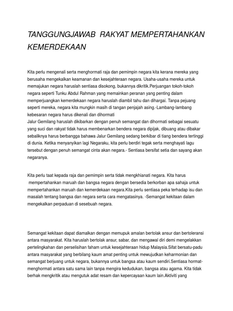 2 apakah cara menjaga maruah diri. Mengamalkan ajaran agama moral mematuhi peraturan dan undang undang. Tiga asas utamakewujudan negara bangsa 1 masyarakat bersatu padu tanpa faham perkauman 2 ideologi demokrasi liberal 3 kepercayaan pada pemerintahan dan undang undang negara 8. Patriotik itu maknanya pertahankan maruah.