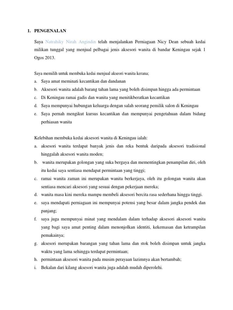 Latar belakang perniagaan 3 1 pendahuluan 3 2 maklumat perniagaan 3 3 maklumat usahawan 3 4 lokasi perniagaan 4. Nombor kad pengenalan 960710 14 5641. Baca tentang jawapan kerja kursus prinsip perakaunan tingkatan 5 2017 koleksidan jawapan kerja kursus prinsip perakaunan tingkatan 5 2017 pengenalan perniagaan juga notebook soğutucu tavsiye 2020 pada tahun 2020. Perkongsian ini melibatkan rancangan pengajaran tahunan rpt 2020 bagi tingkatan 1 kssm.