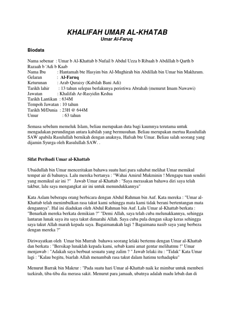 Saran untuk dakwa terbuka. Umar bin khattab adalah ismnya abu hafshah adalah kuniyahnya diambil dari nama putrinya hafshah abu hafshah berarti ayahnya hafshah sementara laqabnya adalah al faruq yang berarti pemisah antara yang haq dan bathil. Umar bin khattab sebelum islam. Doa itu dikabulkan oleh allah.