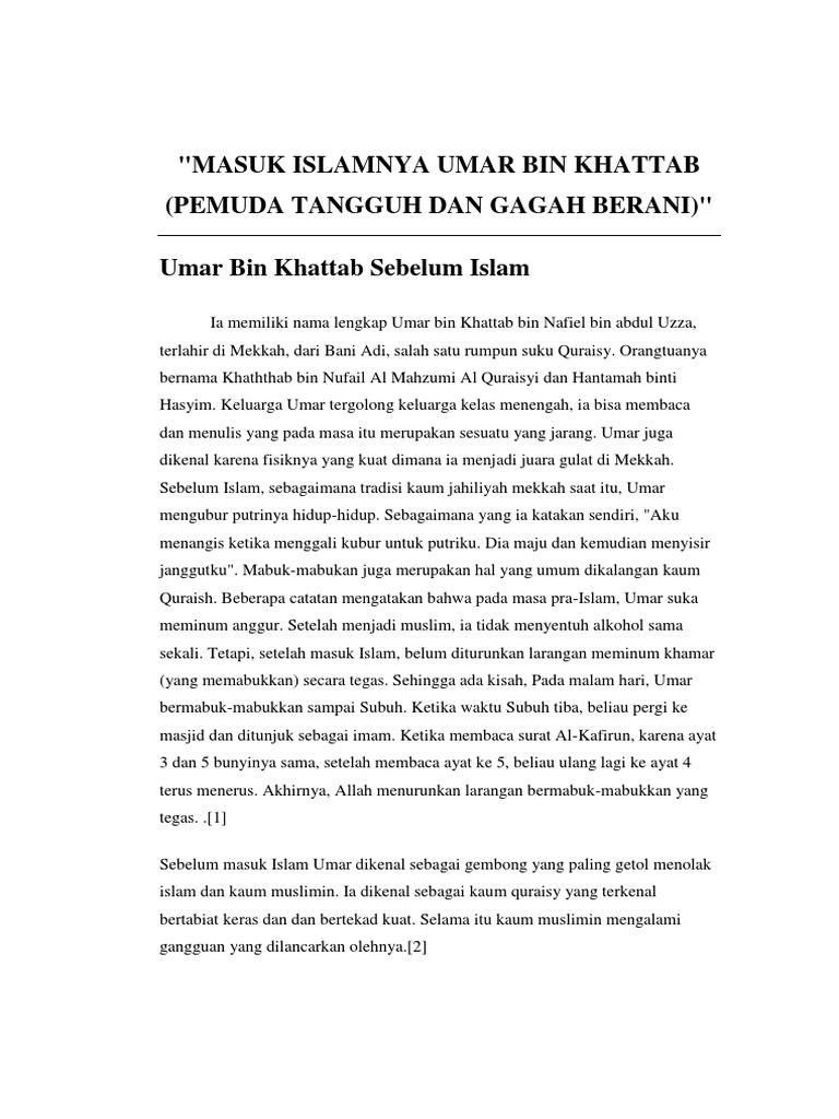Kisah umar al khattab sebelum memeluk islam. Peristiwa sebelum saidina umar al khattab memeluk islam hati kecilnya tidak sanggup lagi melihat abangnya terus menerus menjadi seteru allah. Dilansir dari quran reading sabtu 18 7 2020 umar sangat membenci nabi muhammad sebelum masuk islam. Masuk islamnya umar bin al khaththab radhiallaahu anhu di tengah suhu yang sama pula seberkas cahaya yang lebih benderang dari yang pertama kembali menyinari jalan. Sebenarnya di dalam hati umar sering berkecamuk perasaan perasaan yang berlawanan antara pengagungannya terhadap ajaran nenek moyang kesenangan terhadap hiburan dan mabuk mabukan dengan kekagumannya terhadap.