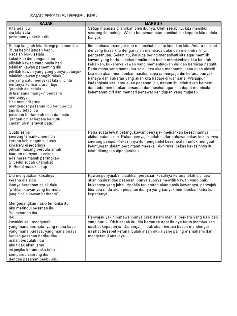 Cikgu Simile Antologi Bintang Hati Tingkatan 3 Sajak Pesan Ibu Beribu Ribu