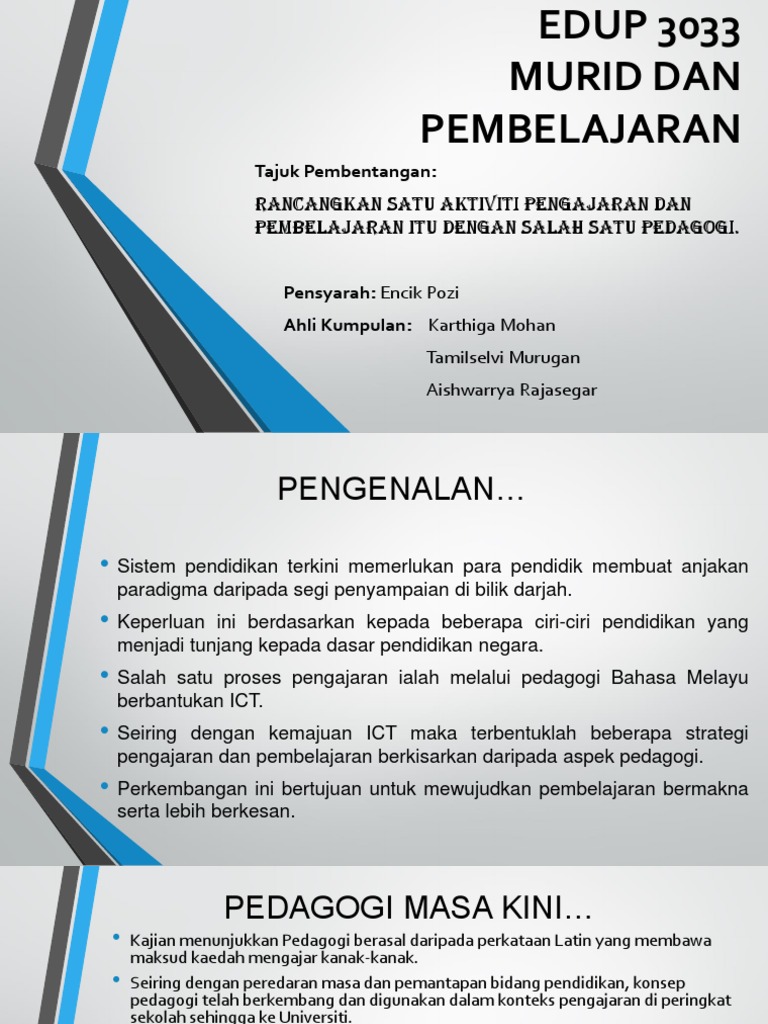 Konsep pengajaran dan pembelajaran. Faktor terpenting dalam pengajaran ialah guru perlu menilai keperluan keperluan pembelajaran yang spesifik dan mengaplikasi strategi strategi serta aktiviti aktiviti yang sesuai untuk pelajar. Cik nurul aini binti hashim pedagogi pendidikan kid 2263 nama no. Konsep dan model pengajaran dan pembelajaran 1.