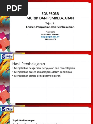 Konsep pengajaran dan pembelajaran edup3033. Pembelajaran mempunyai pengertian yang mirip dengan pengajaran walaupun mempunyai konotasi yang berbeda. Guru dapat mengakhiri pengajaran dengan mengambarkan generalisasi n dalam bentuk pengurusan grafik atau gambar visual sekiranya murid belum menguasai apa apa yang diajar guru seharusnya meminta murid menyatakan peraturan konsep dan perkaitan perkaitan yang diperolehi sepanjang tempuh pembelajaran sehingga mereka berjaya menguasainya. Konsep belajar dan pembelajaran belajar dan pembelajaran merupakan dua konsep yang saling terkait satu satu sama lain bagaikan dua sisi mata uang yang sulit untuk dipisahkan. C5 a3 c2 a3 app1011 2.