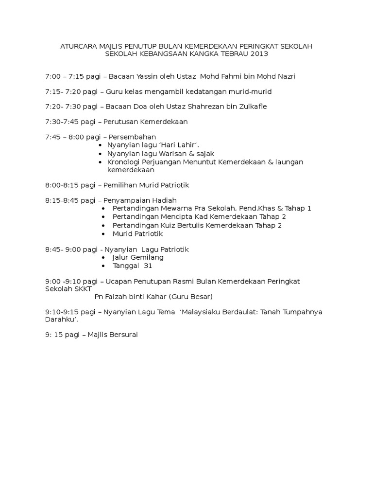 Kronologi kemerdekaan malaysia 1930 april parti pertama di tanah melayu ditubuhkan. Di melaka sambutan di adakan di lokasi wajib iaitu di banda hilir melaka. Meskipun demikian jepang menginginkan kemerdekaan indonesia pada tanggal 24 agustus. Menanamkan semangat patriotik dan semangat nasionalisme dalam diri setiap murid dan guru.