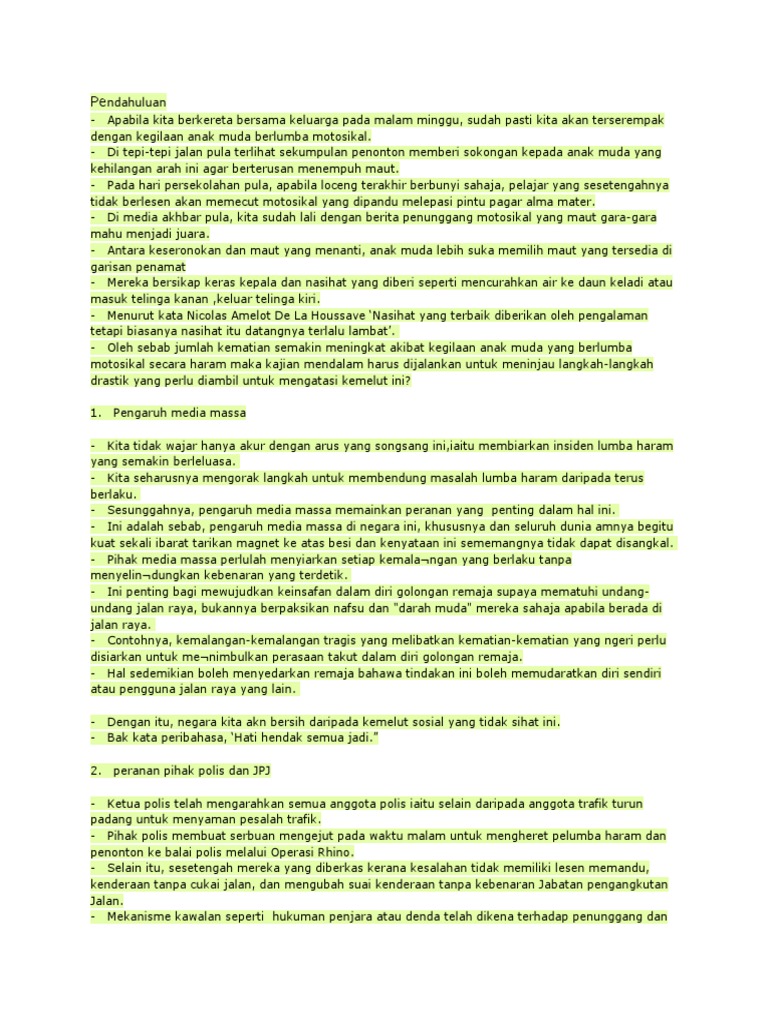 August 23 2008 at 2 21 pm uncategorized penglibatan remaja dalam perlumbaan motosikal secara haram membimbangkan banyak pihak. Kegiatan lumba motosikal haram semakin menjadi jadi pada masa kini sehingga boleh dikatakan sudah menjadi tokak dan nanah kepada negara. Bahasa melayu bahasa melayu spm dan pmr cara menulis karangan bahasa melayu karangan karangan respons terbuka panduan menulis kesimpulan karangan tip peperiksaan. Baru baru ini rancangan 999 di tv3 telah menyiarkan kegiatan lumba motosikal haram dan melalui rancangan tersebut didapati majoriti pelumba haram ialah golongan remaja.