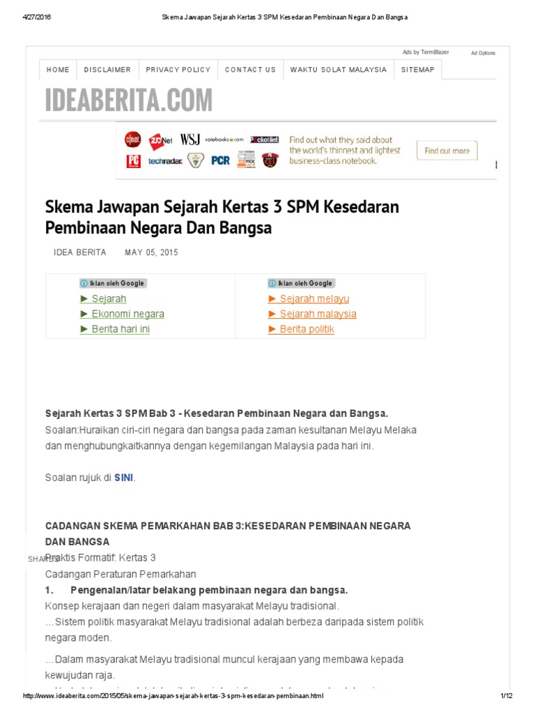 Soalan kertas 3 bab 4. Kedudukan raja begitu tinggi dan istimewa dalam sesebuah kerajaan. Tema 11 pembinaan negara bangsa ke arah kemunculan negara malaysia berdaulat merujuk tema 11 huraian sukatan pelajaran dan buku teks sejarah tingkatan 5 bab 5 berdasarkan tajuk di atas calon dikehendaki melaksanakan tugasan berikut. Berikut dikongsikan contoh soalan dan skema jawapan pembinaan negara dan bangsa malaysia untuk sejarah kertas 3 tingkatan 5 bab 4.