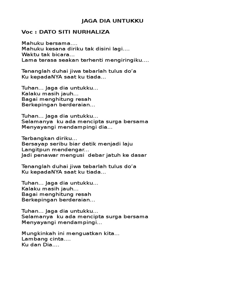 Lirik tuhan jagakan dia oleh motif band. Jagakan dia untukku siti nurhaliza kasih juju khamis mei 22 2014. Tuhan jaga dia untukku selamanya ku ada. Tuhan jaga dia untuk ku lagu latar yang mengiringi video tersebut adalah lagu nyanyian datuk siti nurhaliza bertajuk mikraj cinta.