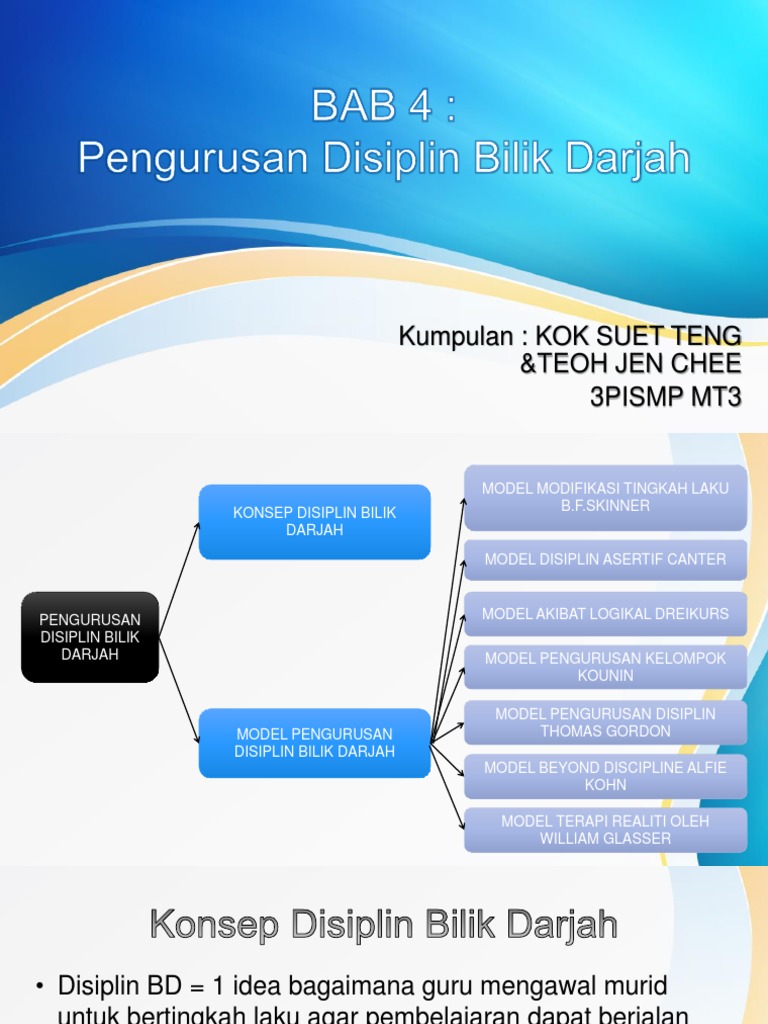 Model pengurusan disiplin bilik darjah 1. View model pengurusan disiplin bilik darjah pptx from edup 3043 at institut pendidikan guru kampus tengku ampuan afzan. Konsep disiplin bilik darjah disiplin merupakan satu set peraturan yang dikenakan kepada murid murid untuk mengawal dan mendapatkan tingkahlaku yang diingini model pengurusan disiplin model modifikasi tingkah laku oleh b f skinner model disiplin asertif oleh lee canter model akibat logikal oleh rudolf dreikurs. Hasnalina bt johari ilya yohana renyta bt awang nurul asikin bt long long deris 2.
