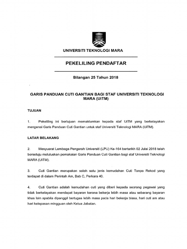 2 2 buat masa ini uitm menggunakan garis panduan kerja lebih masa universiti teknologi mara yang telah diluluskan oleh lembaga pengarah universiti pada mesyuarat ke 150 bertarikh 16 februari 2016 yang dikeluarkan melalui pekeliling pendaftar bilangan 4 tahun 2016. Pengurusan bilik mesyuarat utama pejabat rektor 37. Pekeliling pendaftar bilangan 5 tahun 2016 pemakluman istiadat konvokesyen ke 84 uitm. Kerja siang giliran bertugas tambahan yang dikerjakan di antara jam 6 pagi hingga 10 malam.