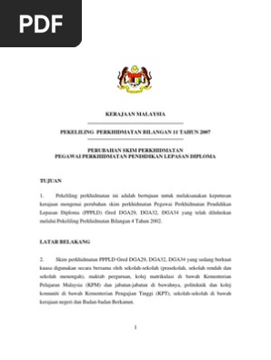 Pekeliling perkhidmatan bilangan 11 tahun 2007. Pekeliling perkhidmatan tahun 2007 keywords. Huraian kerja perkhidmatan pegawai perkhidmatan pendidikan mengikut pekeliling perkhidmatan bilangan 11 tahun 2007 mengambil kira perkembangan semasa perkhidmatan pendidikan di bawah kpm iaitu dasar terbaru pewujudan sekolah kluster dan konsep guru besar cemerlang di sekolah rendah maka kerajaan memutuskan supaya ditambah satu lapisan gred baru bagi skim perkhidmatan pppld untuk jawatan guru. Pekeliling perbendaharaan bil 5 tahun 2007 dan buku tatacara pengurusan aset 1. Dengan berkuatkuasanya pekeliling perkhidmatan ini maka skim perkhidmatan pppld yang berkuat kuasa pada 1 november 2002 melalui lampiran b pekeliling perkhidmatan bilangan 4 tahun 2002 adalah diubah seperti di lampiran a.