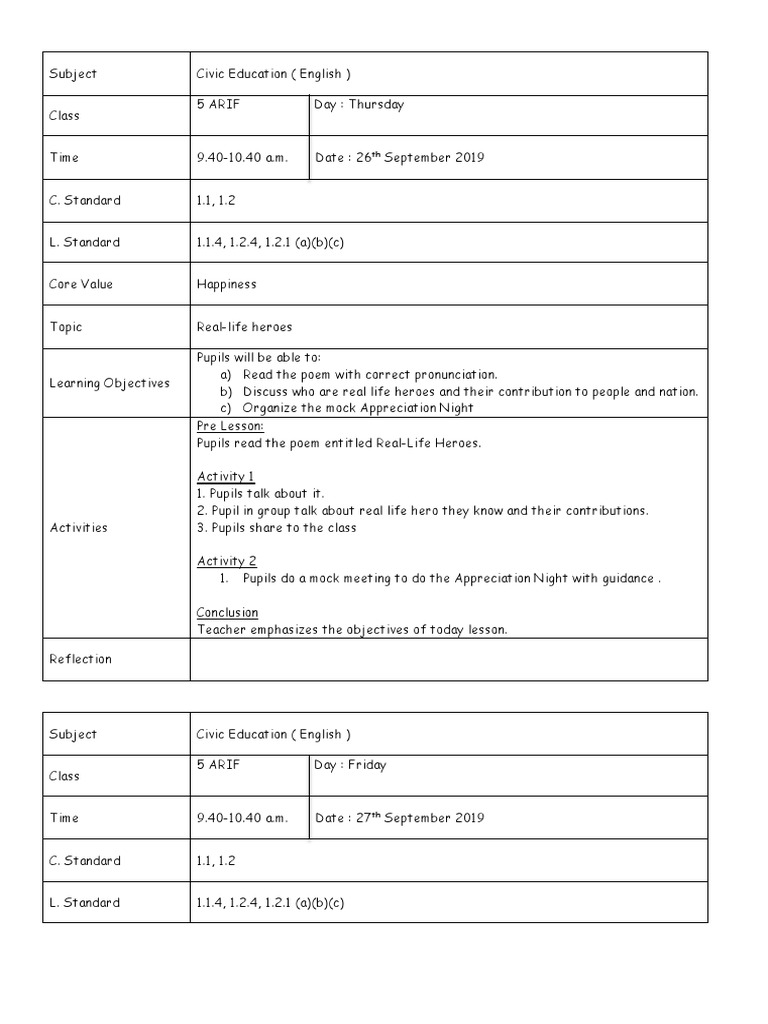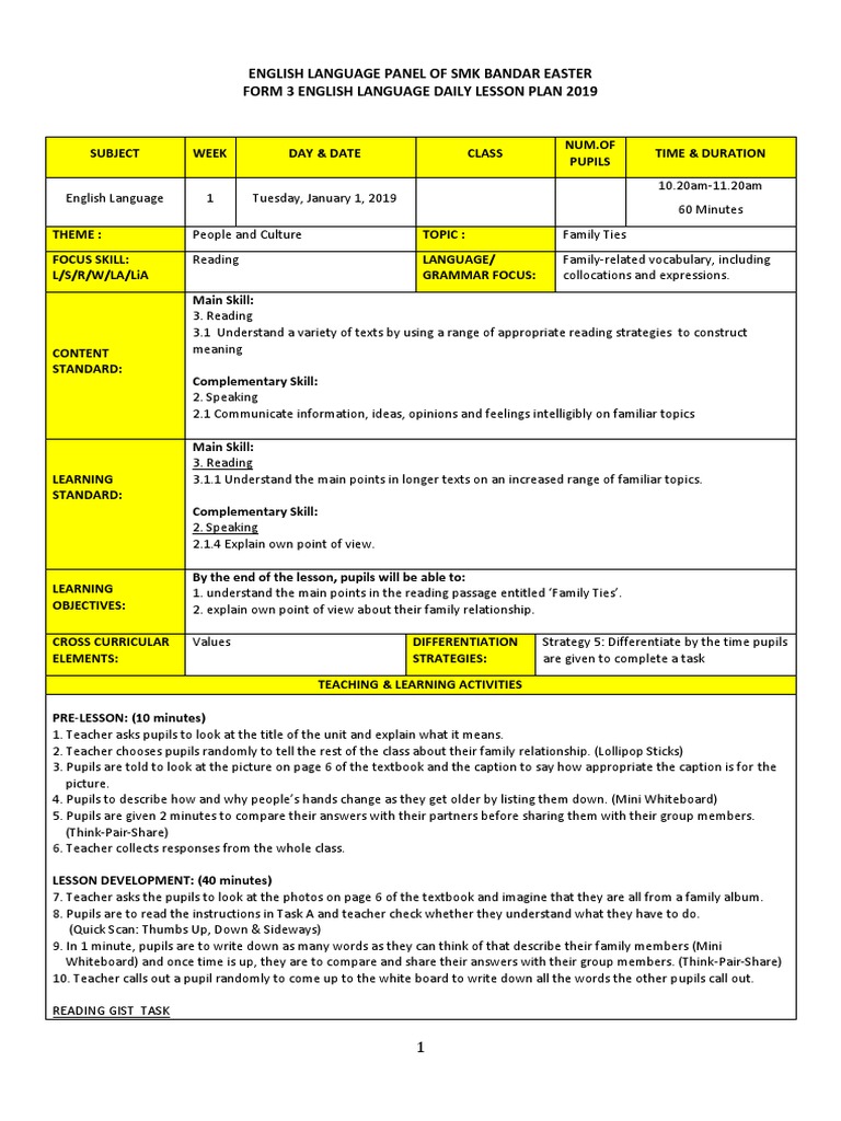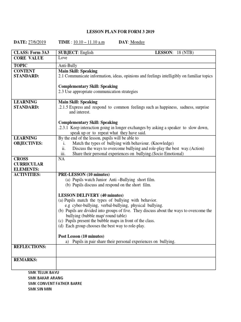 Contoh complete lesson plan rph bahasa inggeris form 1 2 3 free download as word doc doc docx pdf file pdf text file txt or read online for free. Teacher gives comment on the students like an dislike. All novels and literature component. Post activity ies conclusion.