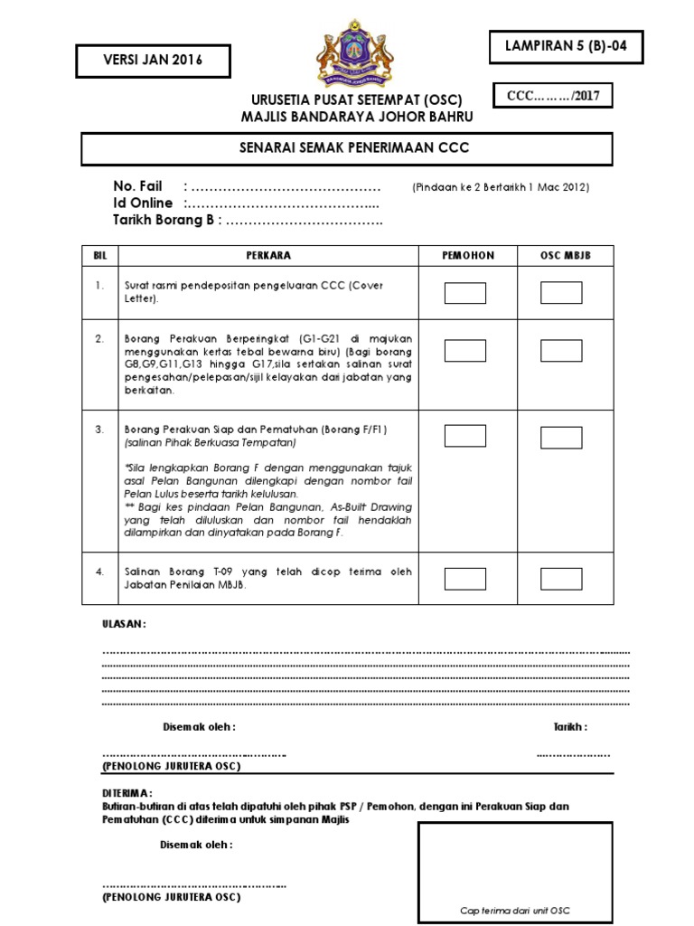 Lam pam joint paper. Sistem ccc mula berkuatkuasa pada 12 april 2007. Peringkat g13 g21 peringkat borang f f1 bil. Dahulunya kita kenali ccc ini sebagai cf dalam bahasa inggeris certificate of fitness atau bahasa melayu disebut sebagai sijil layak menduduki.