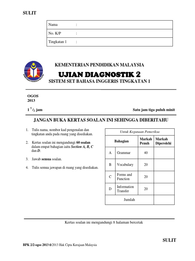 Bacaan tingkatan 1 nama kelas no kad. Modul cakna bahasa melayu tingkatan 1 2 dan 3 jawapan. Soalan sains tingkatan 1 dalam bahasa melayu. Soalan dan jawapan temuduga pemandu kenderaan.