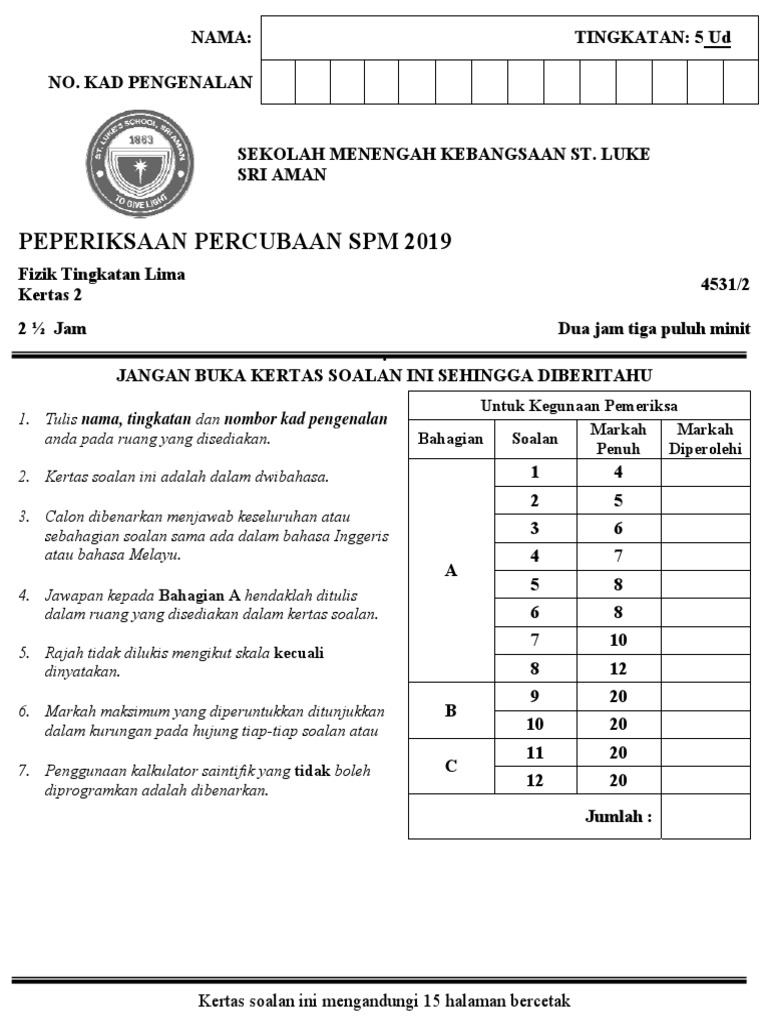 Setelah menduduki peperiksaan spm mereka akan menuju ke alam kolej dan universiti bagi memilih jurusan yang lebih spesifik. Kertas soalan percubaan spm dan skema jawapan tahun 2019. Koleksi soalan percubaan spm 2019 selangor sijil pelajaran malaysia atau spm merupakan satu penilaian yang diadakan di penghujung waktu pendidikan murid di peringkat menengah. Kertas soalan percubaan spm bahasa melayu 2019 negeri selangor adalah sebahagian kertas soalan yang telah berjaya dikumpulkan dan dikemaskini oleh kami.