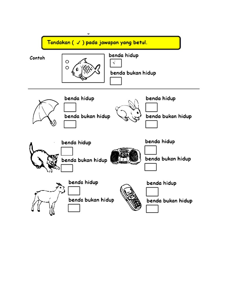 Keperluan asas benda hidup other contents. Soalan latihan tahun 1 hingga 5. A boleh membesar b bukan benda hidup sains tahun 1 ciri ciri benda hidup. C pandankan gambar dengan perkataan yang sesuai b1d3e1 mengenal pasti haiwan yang terdapat di sekeliling katak kucing gajah ikan ular 5 markah.