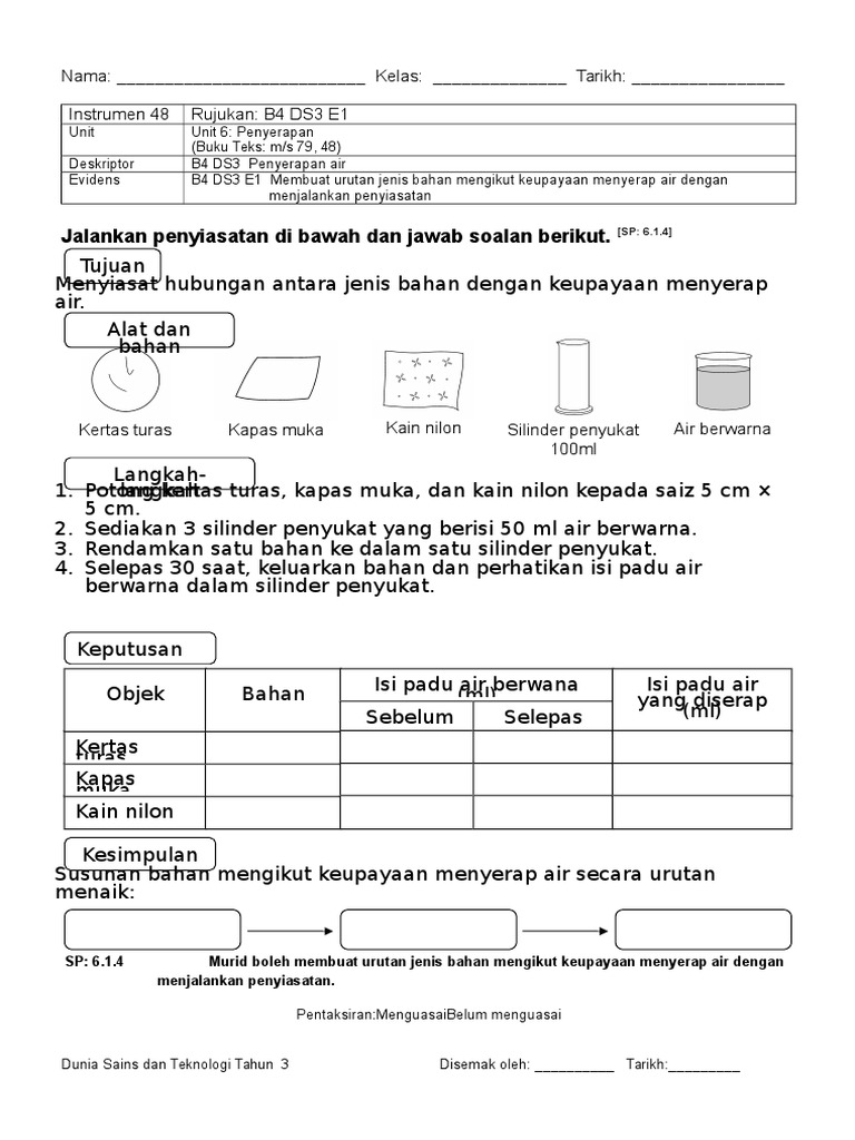 Kandungan air yang tertinggal di dalam setiap bikar selepas objek objek tersebut dikeluarkan ditunjukkan di bawah. Sains tahun 1 penyerapan sains tahun 1 penyerapan bm tahun 1 imbuhan awalan me men dan mem ms 54 organ pernafasan manusia. Sains tahun 1 penyerapan kepentingan objek menyerap air dan tidak menyerap air id. Melalui penggunaan ict para guru boleh memaksimumkan penambahan perkongsian pembelajaran secara online sama ada pembelajaran secara jarak jauh atau pembelajaran kendiri tanpa mengambil kira lokasi dan tahap kemahiran.