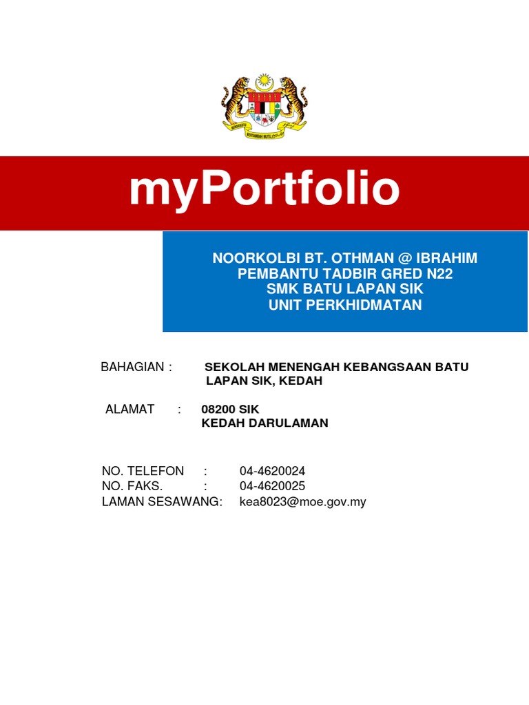 Myportfolio adalah satu kaedah pengurusan ilmu yang memberikan penekanan kepada pengupayaan minda setiap penjawat awam dalam kerangka organisasi berpembelajaran learning organisation. Melaksanakan tugas tugas perkeranian dan operasi di bahagian governan yang. Skim perkhidmatan pembantu tadbir p erkeranian operasi gred n17 n22 n26. Download 4 votes contoh myportfolio guru hot.