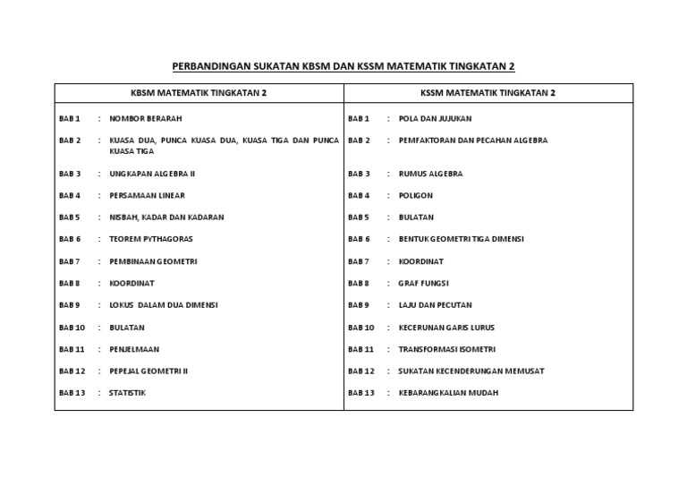 Buku spesifikasi kurikulum matematik tingkatan 2 ini ialah terjemahan yang sah daripada buku curriculum specifications form 2 mathematics terbitan curriculum development centre ministry of education malaysia putrajaya. Selari dengan perkembangan pesat teknologi digital kementerian pendidikan malaysia akan menggunakan teknologi dan kandungan digital dalam dalam bidang pendidikan. Koleksi nota ringkas dan padat matematik tingkatan 2 ini adalah sebahagian kertas soalan yang telah berjaya dikumpulkan dan dikemaskini oleh kami. Portal ini dibangunkan untuk membantu pelajar terutamanya serta para guru dan juga ibubapa dalam nota yang terbaik untuk proses pengajaran dan pembelajaran yang lebih bersistematik dan berkesan.