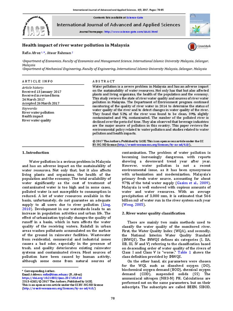 Pdf Health Impact Of River Water Pollution In Malaysia